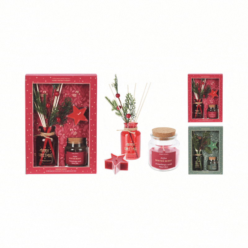 Հավաքածուները ներառում են 2 բուրավետ մոմ և բուրավետիչ: Առկա են 2 տեսակներ` Misletoe Fir և Winter Berry բույրերով:
