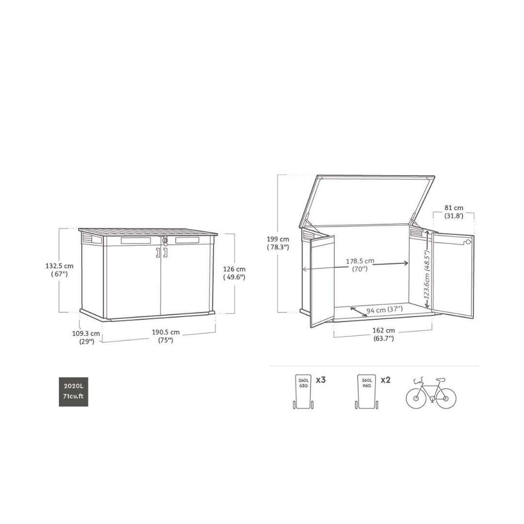 Պահոցի արտաքին չափսերը՝ 190x109x132.5սմ
