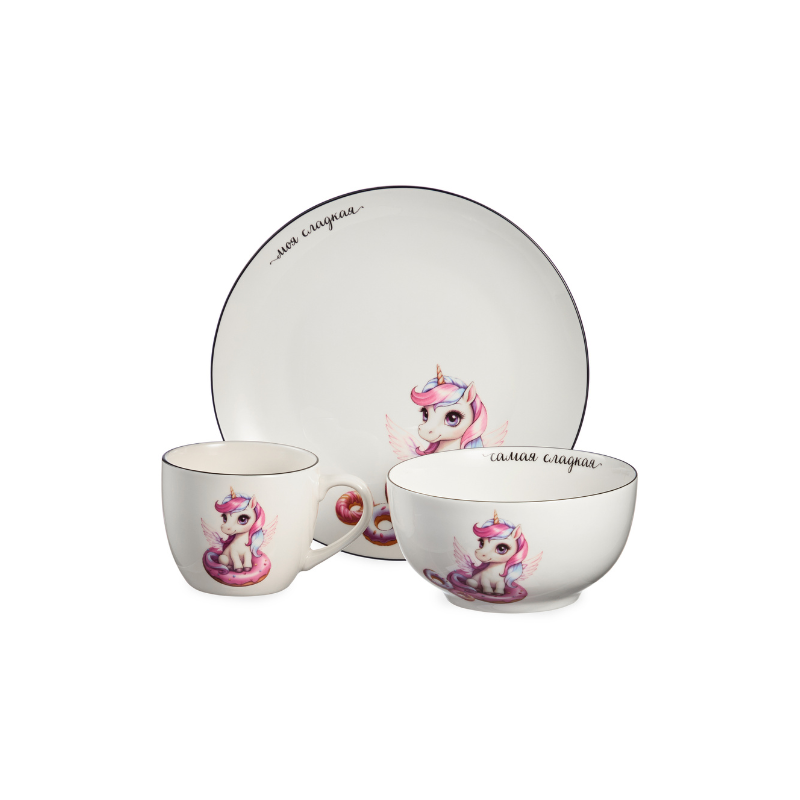 Գլխավոր → Ամբողջ տեսականի → Սպասք → Հավաքածու մանկական նկարազարդ սպասքի 3 կտոր (Միաեղջյուր)